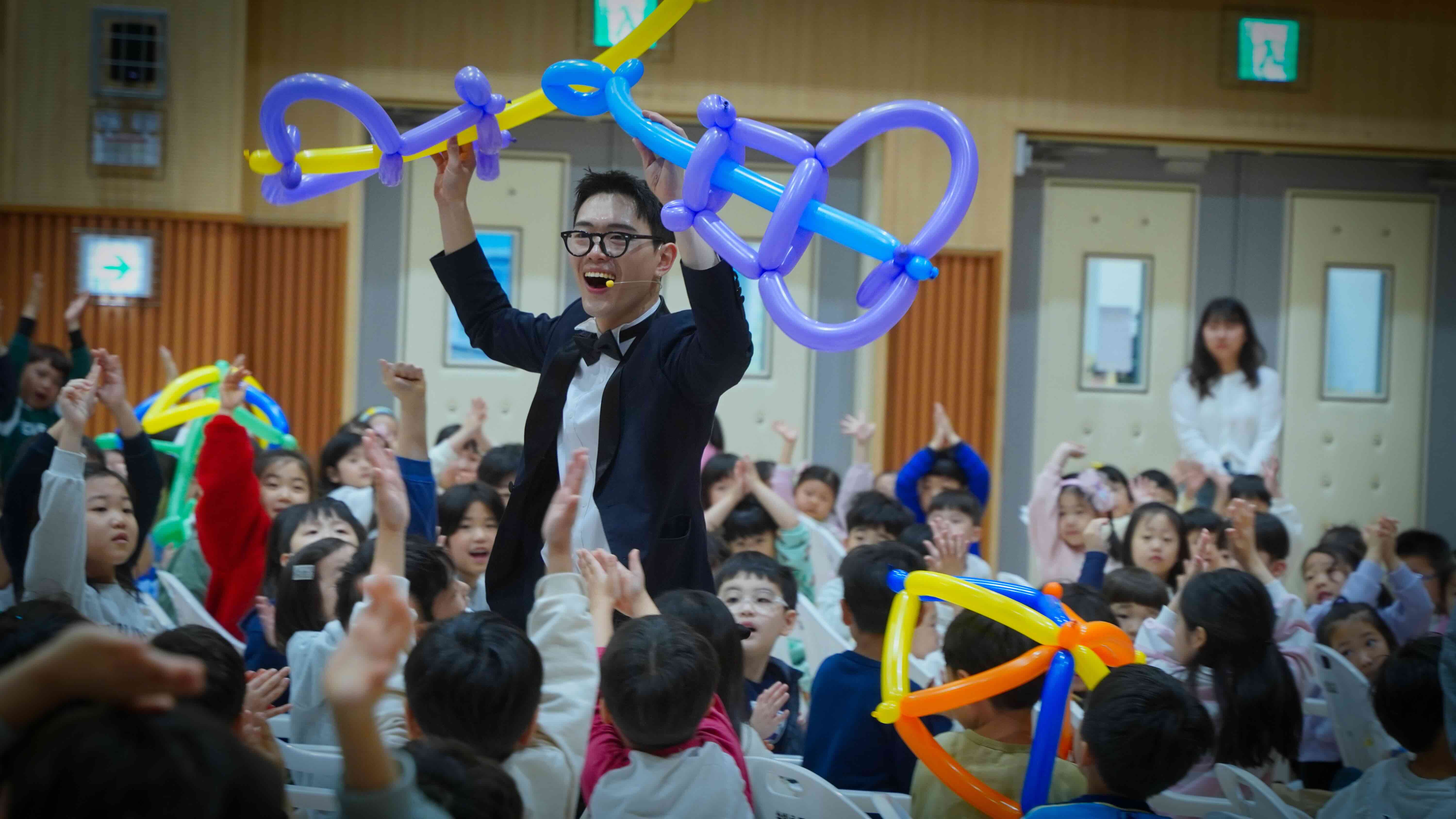 풍선과 마술이 결합된 공연으로,공연 속에서 완성된 풍선 아트를 선물로 받아, 특별한 추억을 남길 수 있는 인기 프로그램입니다.